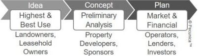 Developers conduct feasibility studies at the start of a project to determine its cost, justify the investment of resources, and establish the approach to maximize profit until project exit. Separate analyses are subsequently undertaken by lenders, operators and investors.